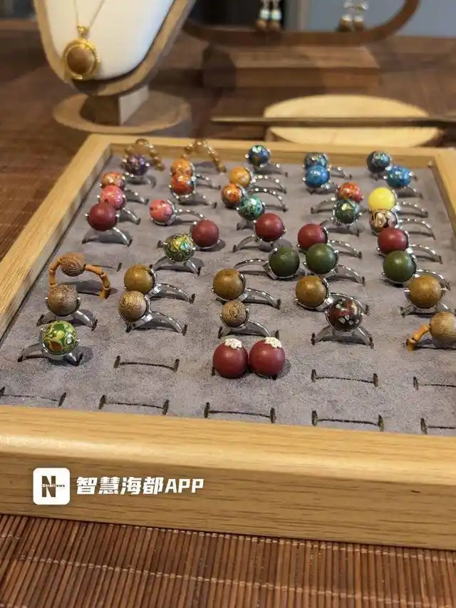 7月27日,记者探访了位于福州市闽侯县侯官村五水公园的裕香堂非遗工作室。展架上,各色中药香珠、香牌、香囊等物品琳琅满目,价格多在100至400元人民币之间。据店员介绍,产品主要选用沉香、檀香、甘松、艾草、夜交藤等具有芳香气息的药材为原料,按特定比例组合,旨在达到舒缓养生的效果。