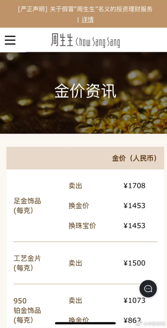金饰克价涨到1708元!克价一夜大涨94元