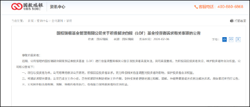 2月6日,国投瑞银基金管理有限公司发布关于积极解决白银(LOF)基金投资者诉求有关事项的公告。近期,公司管理的国投瑞银白银期货证券投资基金(LOF)进行估值调整和相关公告引发投资者高度关注。公司高度重视,为积极回应投资者关切,维护投资者的合法权益,公司现公告如下: