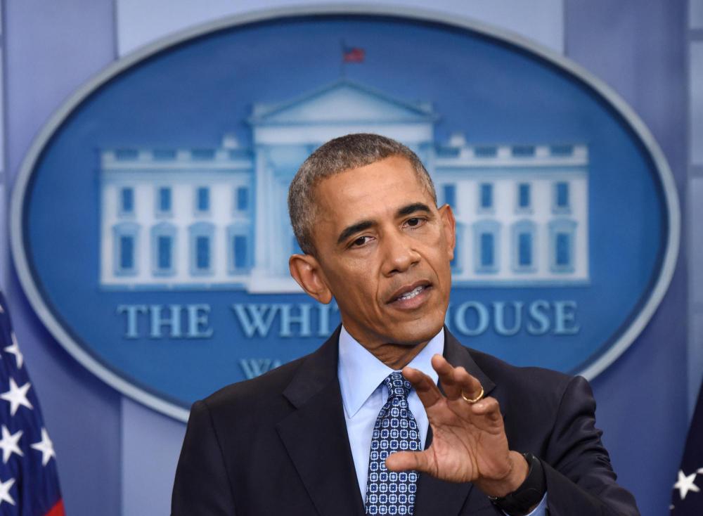 2017年1月18日,时任美国总统奥巴马在华盛顿白宫出席记者会时讲话。新华社记者殷博古摄