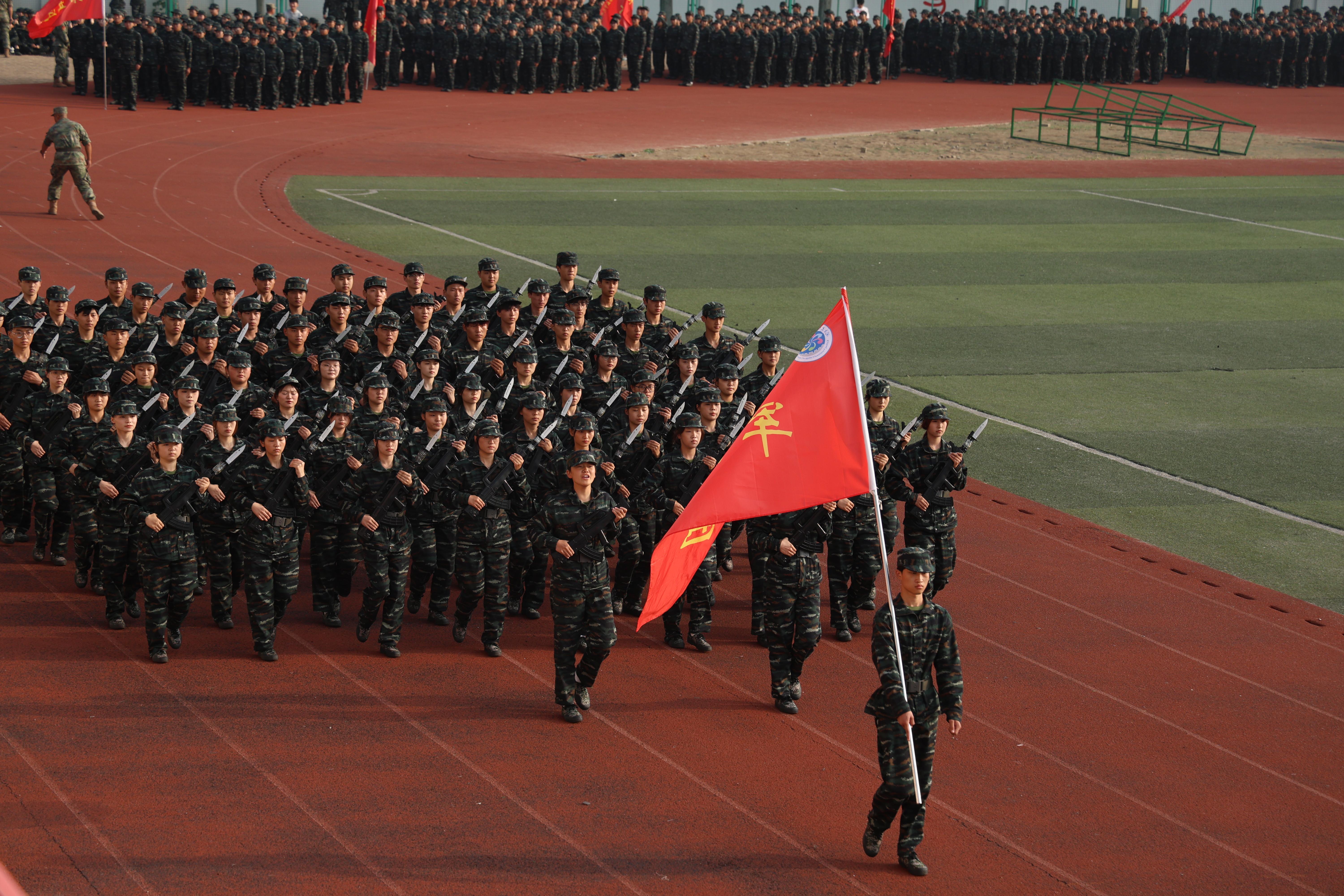 在激昂豪迈的军乐声中,51个军训连队精神抖擞、步履铿锵,依次通过主席台接受检阅,部分新生还进行了擒敌拳、匕首操、刺杀操、战术表演等军事成果汇报。