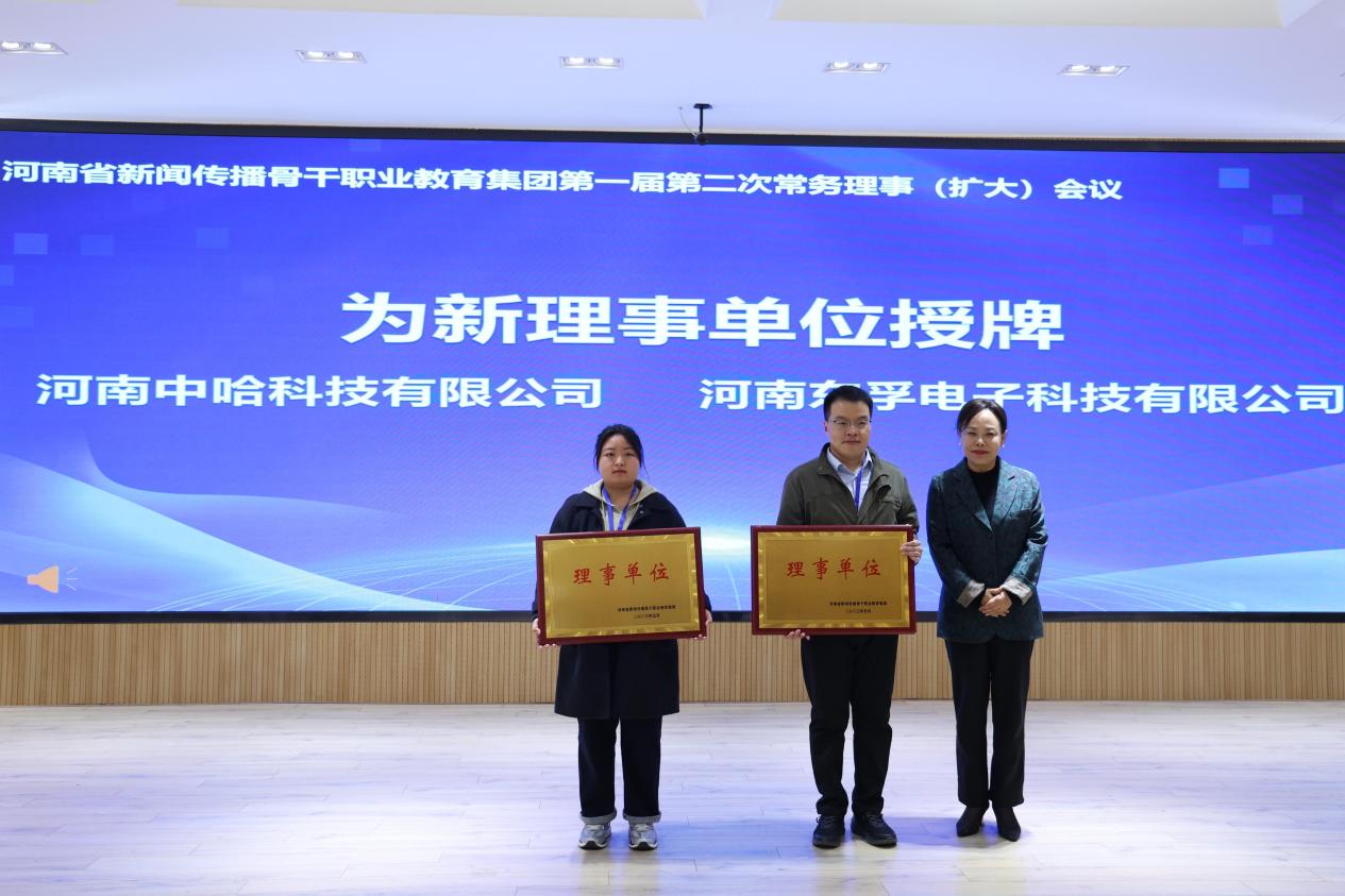 会议对申请加入职教集团的2家企业进行了审议,同意吸纳其为理事单位,职教集团理事长何新为新理事单位授牌。在会议交流环节,成都华栖云科技有限公司解决方案技术部总经理王伟成、广电深度合作伙伴来画科技教育事业部总经理程祥涛、北京光穗科技公司高级合伙人、CMO陈志远等围绕会议主题展开深入探讨和交流,分享各自的经验与见解,共同为河南省新闻传播骨干职业教育集团的发展出谋划策。