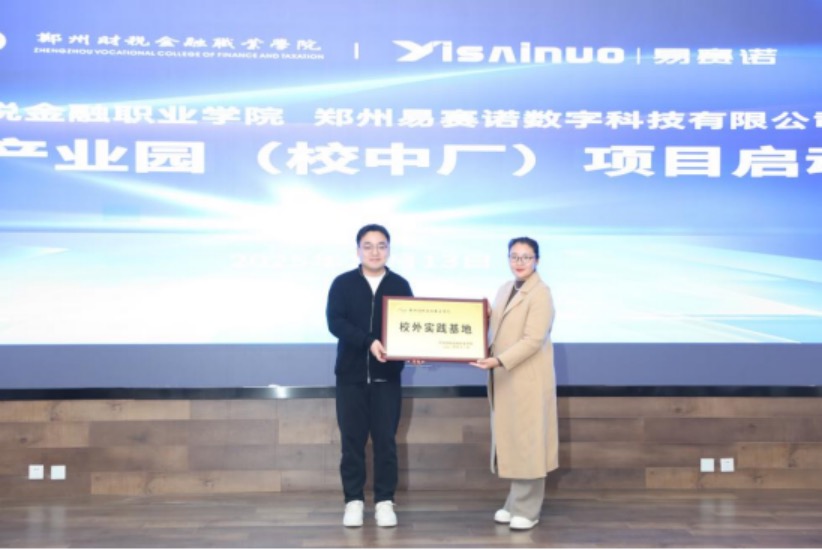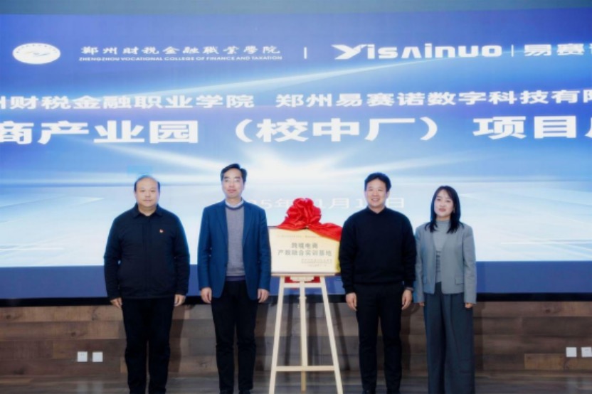 11月13日下午,郑州财税金融职业学院与郑州易赛诺数字科技有限公司在该校创业孵化园举行校企合作揭牌暨跨境电商产业园(校中厂)项目启动仪式。该校校长李晓东、易赛诺公司总经理阮峰等校企双方代表及数字商贸学院师生齐聚一堂,共同见证教育链、人才链与产业链、创新链深度融合的重要时刻。启动仪式由数字商贸学院院长南志光主持。